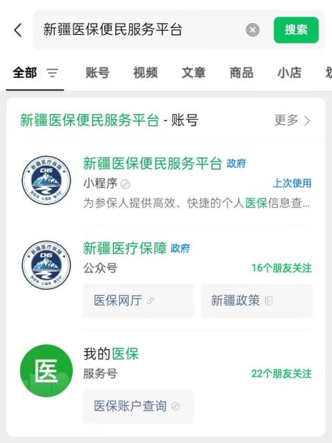 第一步:微信搜索“新疆医保便民服务平台”小程序。