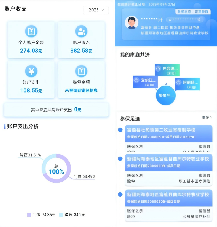 阿勒泰市民尹先生在亲身体验“医保个人画像”后称赞道:“这个‘画像’功能实在太好用了,什么时候参的保?在哪里用了医保?不管是住院报销记录还是药房买药明细,都看得明明白白,界面简单好操作,省去了我跑窗口咨询的时间。” 这不仅是尹先生的切身感受,更是新疆医保部门致力于为每一位参保人带来便捷体验的初心使命。